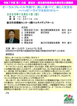 令和7年度 第18回鹿沼市・鹿沼歯科医師会共催市民公開講座 のお知らせ